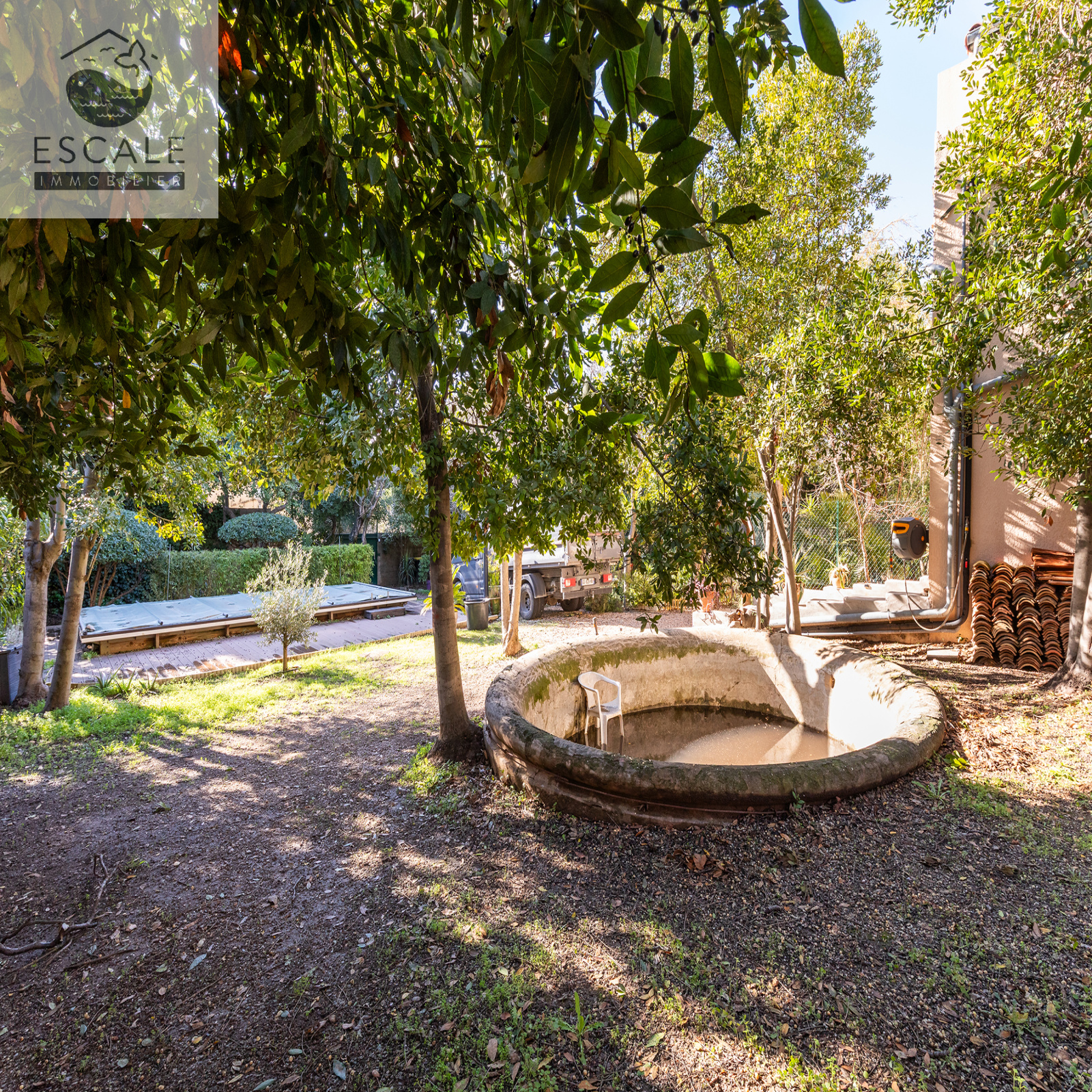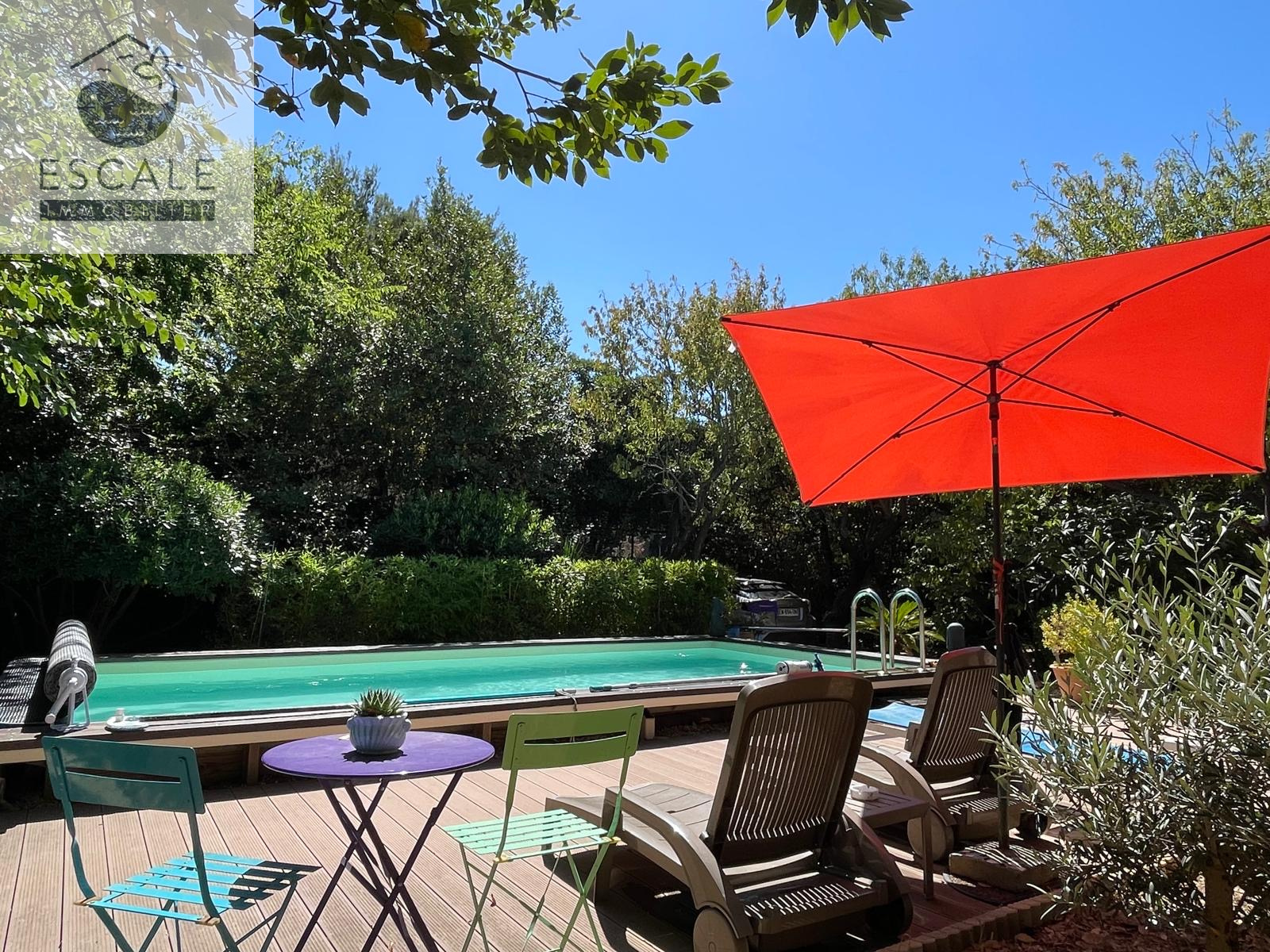 Magnifique jardin boisé et arboré d'environ 900m2, doté d'une piscine étincelante et d'espaces de détente aménagés avec goût. Un cadre idyllique alliant confort et sérénité parfait pour des moments de relaxation en famille ou entre amis.
