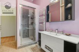 A l'étage, la maison se compose d'un dégagement, d'un séjour avec cuisine équipée semi-ouverte, de deux chambres dont une avec accès balcon, d'une salle d'eau avec grande douche adaptée aux normes PMR et d'un WC séparé. En plus, vous y trouverez un studio indépendant prolongé par une grande terrasse intimiste de 25m2 bien exposée avec spa et à l'abri des regards indiscrets idéale pour des moments de détente.